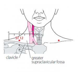 • Deng 1993 : au milieu de la fosse sus-claviculaire, à 4 cun de la ligne médiane antérieure.