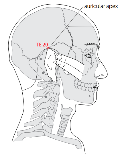 - WHO 2009 : On the head, just superior to the auricular apex. Note: With the auricle folded forward and pressed against the head, the point is located where the auricular apex touches the head.