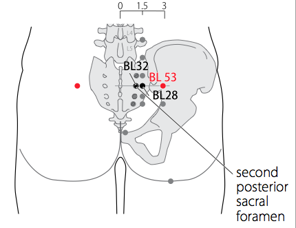 Jia yi jing : « Douleur de la colonne lombaire, crainte du vent, plénitude et fermeté du bas-ventre, syndrome Long bi-obstruction avec douleur pelvienne, miction impossible » (Guillaume 1995).